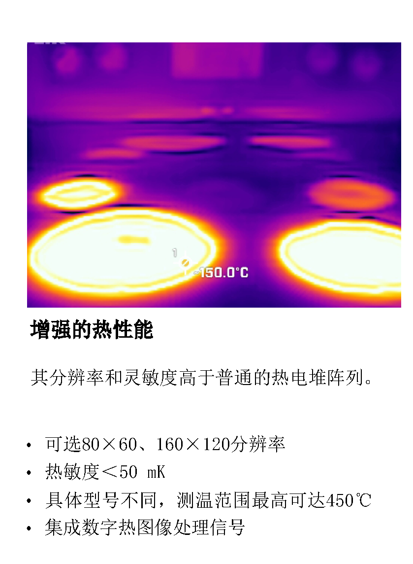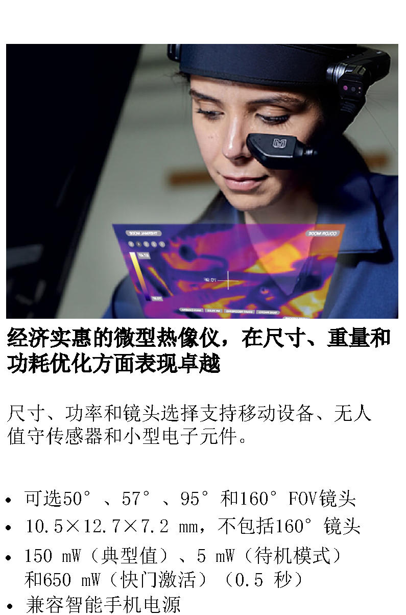 Lepton 的低功耗、卓越的图像质量和集成支持可实现移动、小型电子产品和无人值守传感器的创新性产品开发,适用于智能建筑、火灾检测、占用跟踪、设备状态监控等。